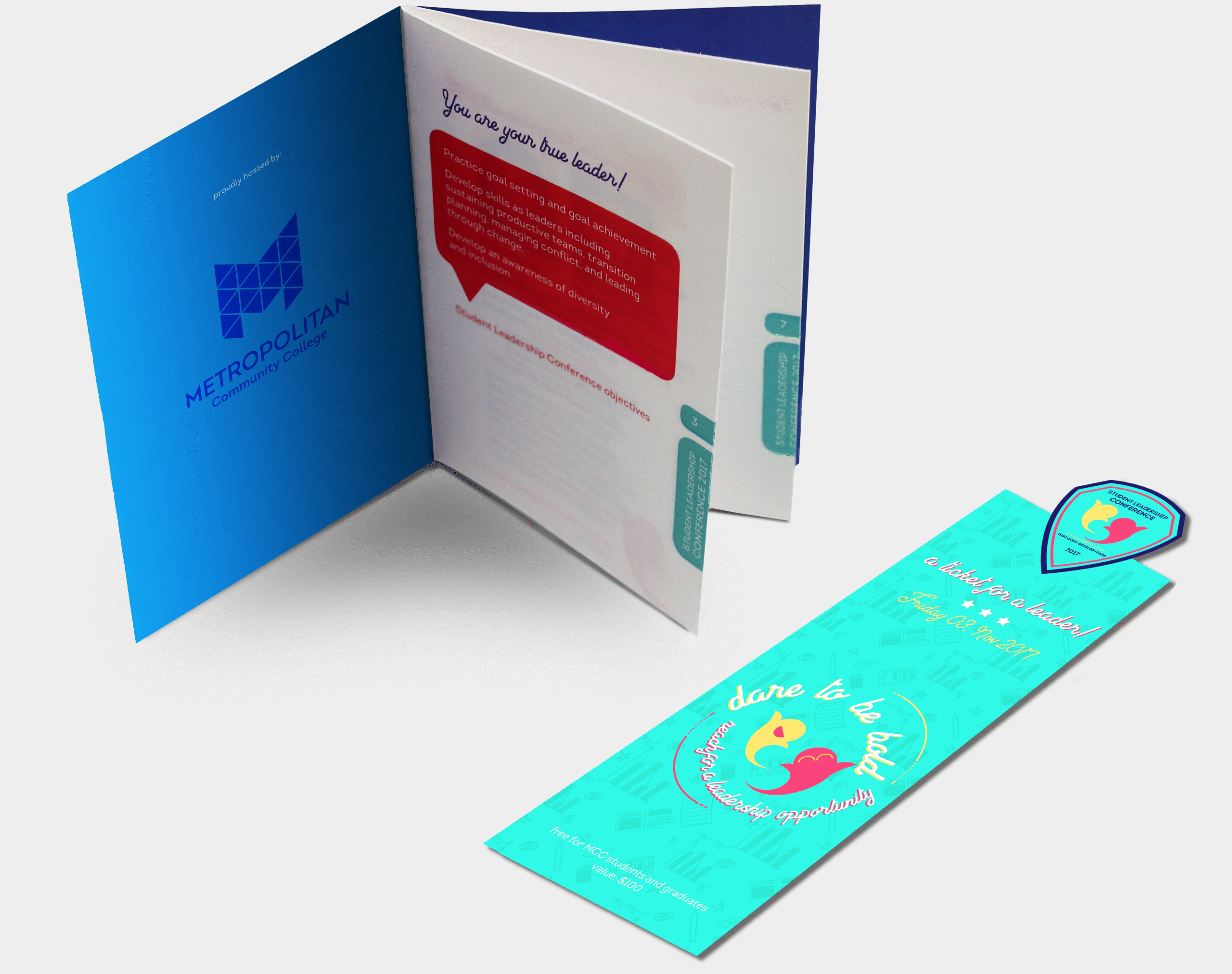 Reflecting back to 2017 Omaha, a time of less demographic diversity, the branding and marketing collateral for the Student Leadership Conference, supported by the Student Council, intentionally incorporated Trang wearing a "PIBOC hat of rainbow." All visual elements aimed to convey a message of inclusivity and representation of the Metropolitan Community College of Omaha, directly addressing the need to attract diverse populations even amidst the city's then-predominantly White demographic. This commitment to diversity was woven into the college itself.