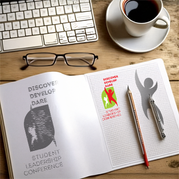 For the official Student Leadership Conference, Trang, as the graphic designer, proposed logo's options and ensured color accuracy. The annual event branding, professional speakers, and networking aimed to help students discover, develop, and dare.