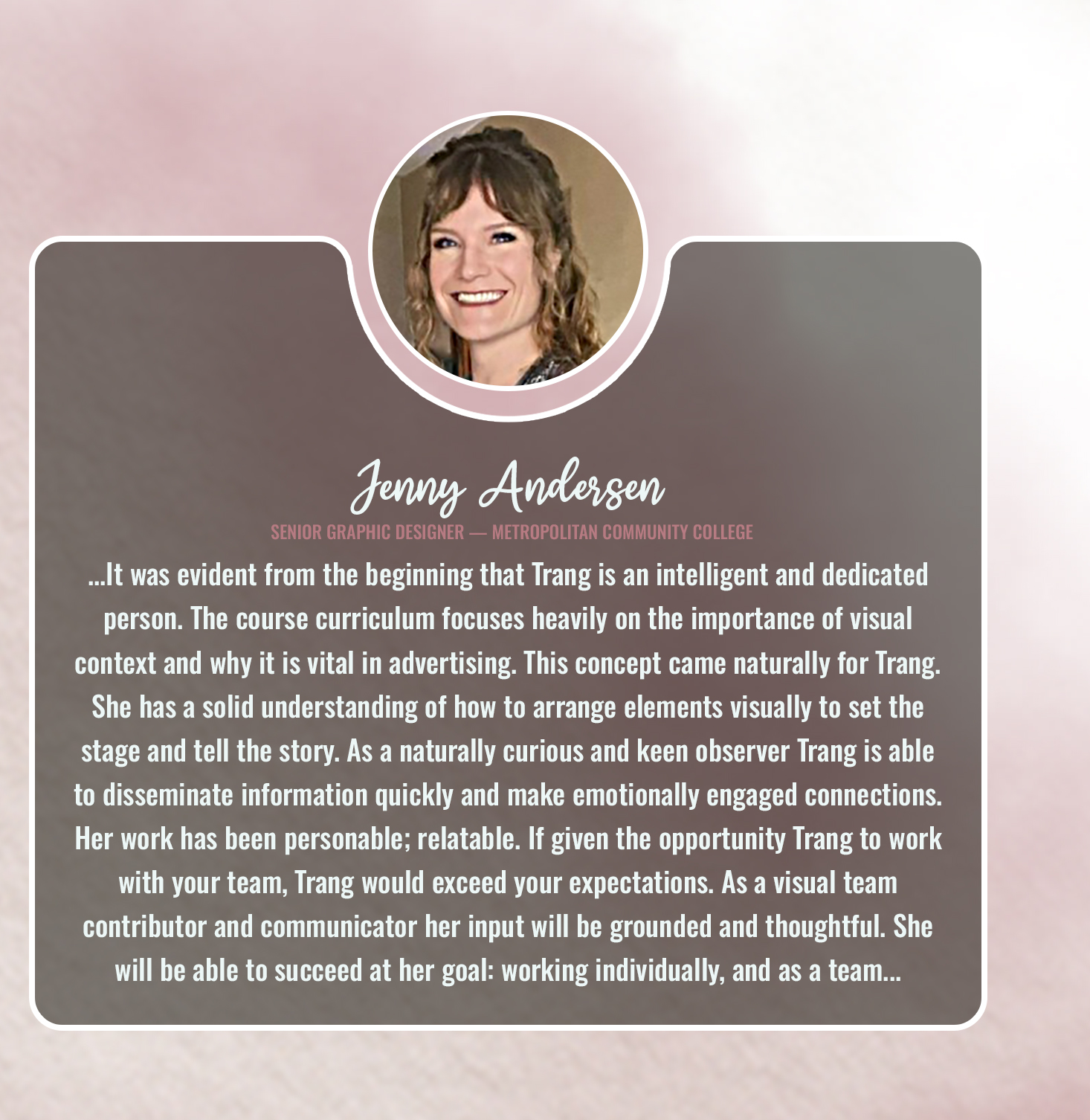 Words of Praise for Trang Designs from colleagues, professional and clients.